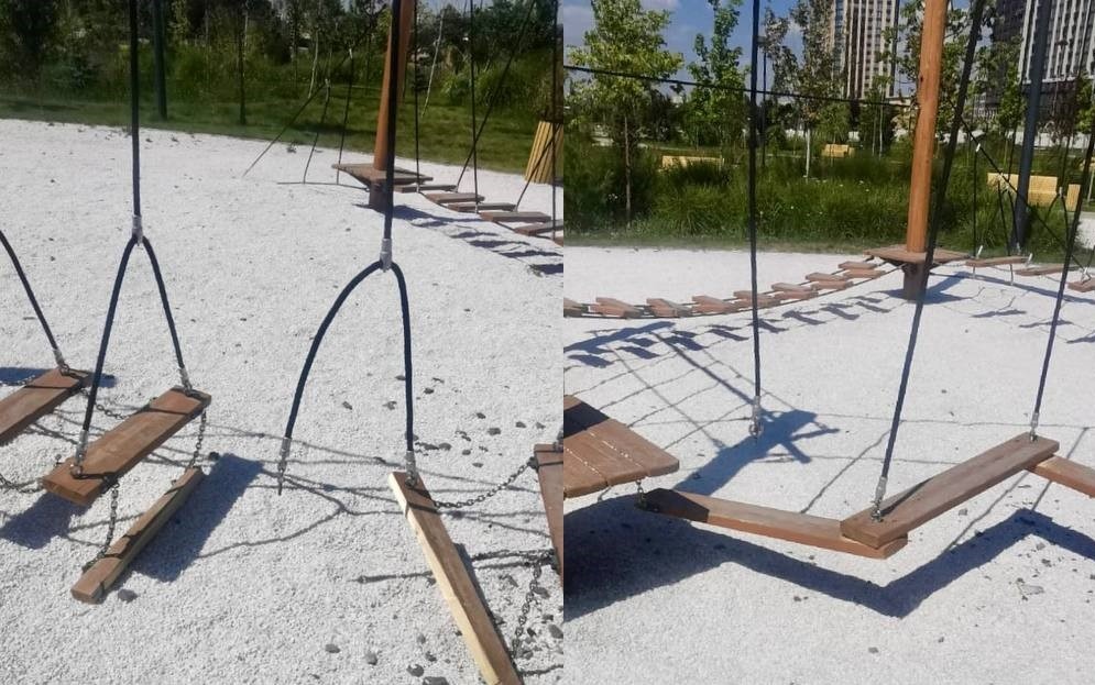 Качели, конечно, уже восстановили, но подобное разрушение имущества лишает детей возможности играть в безопасности.