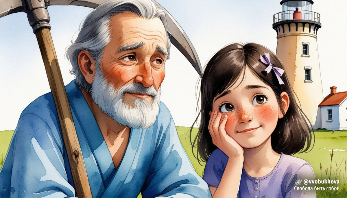 В дневнике нарисовала высокий белый маяк. А у его подножия — маленький, ярко-зелёный квадратик газона и крошечную фигурку старика с косой. В облачке над Микой, которая молча сидит на крыше и наблюдает за всем этим с высоты, я записала то, что поняла сегодня: «Иногда один-единственный запах может рассказать о твоей жизни больше, чем тысяча слов».