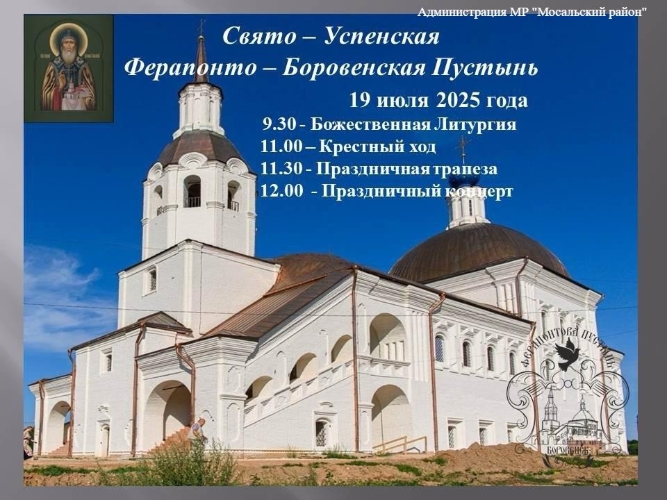 🙏 19 июля в монастыре состоится престольный праздник, посвященный памяти святого Феропонта Боровенского #АдминистрацияМРМосальскийРайон