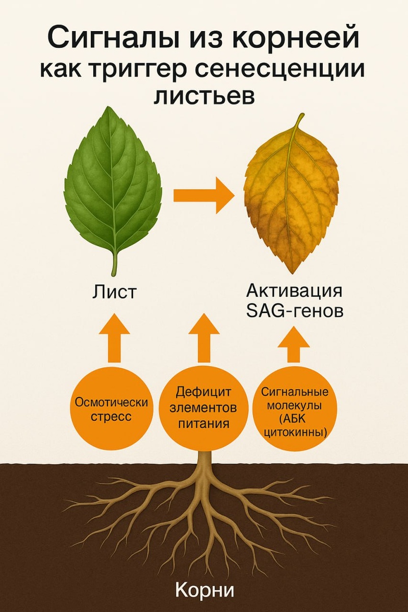 📡Сигналы из корней как триггер сенесценции листьев