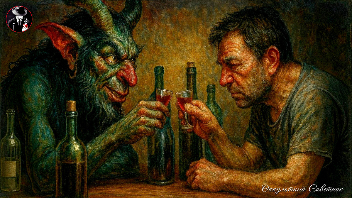 Чем дольше человек пьёт, тем крепче к нему цепляется Бес, который «метит» жертву как свою собственность, свой личный источник питания, ставит на ней клеймо: «Это моё!»