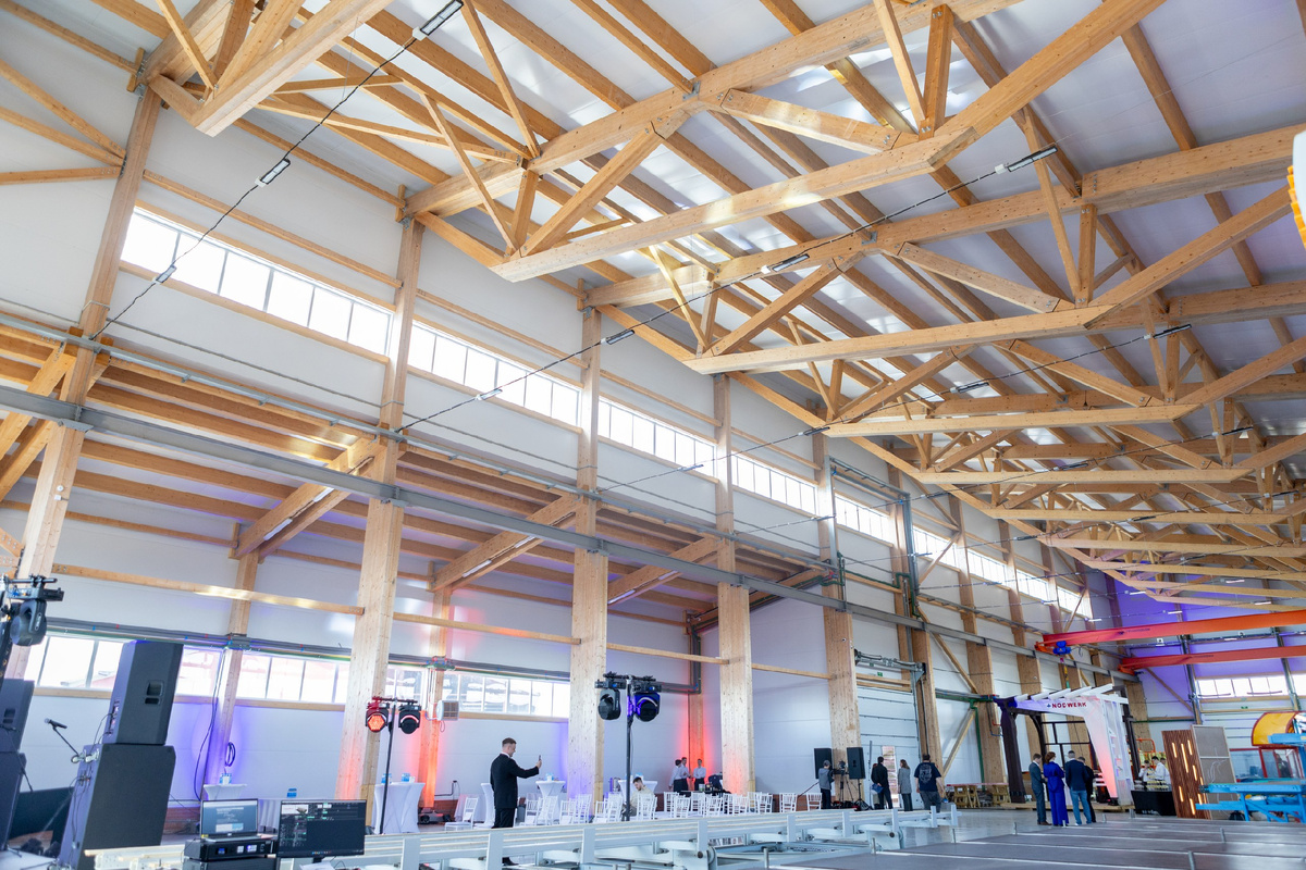 16 мая 2025 года в г. Сортавала состоялось торжественное мероприятие по случаю открытия Нового производственного цеха компании +NODWERK. Это значимое событие не только для Республики Карелия, но и для всей деревообрабатывающей отрасли России. Промышленных объектов в деревянных конструкциях в нашей стране не так много. Здание цеха было возведено всего за три месяца, при этом силовой каркас из конструкционной клееной балки изготавливался на уже существующем собственном производстве. «Мы показали и своим заказчикам, и участникам рынка, что возможно в дереве строить подобные объекты», — отмечает генеральный директор компании Игорь Худяков. Новое производство компания оснастила уникальным современным оборудованием — станком Hundegger K2i, совмещенным с роботом. В рамках инвестиционного проекта было создано 12 новых рабочих мест. Благодаря этому, объемы производства увеличатся вдвое. Запуск второй производственной линии позволит перейти от технологии PreCut к технологии PreFab и начать работ