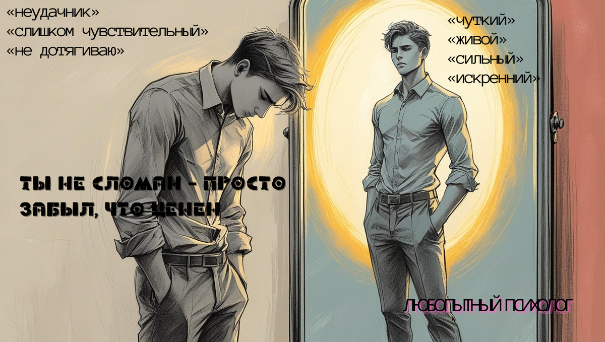 Привет мой дорогой читатель ты на канале «Любопытного психолога», где мы копаем вглубь, говорим по-человечески и ищем свою ценность не в чужих лайках, а в собственных глазах. Сегодня поговорим про любовь к себе: не из глянца, а из науки и жизни. «Хочешь, я по секрету скажу тебе страшную вещь?»