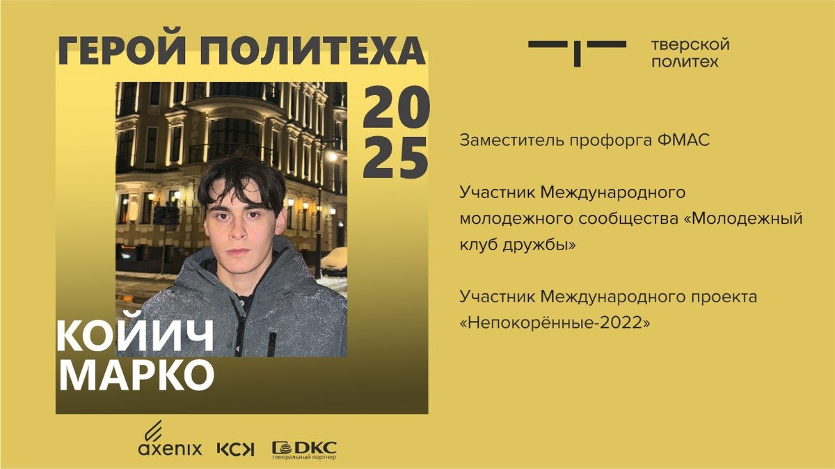 ⭐️ Тверской государственный технический университет продолжает представлять вам лауреатов ежегодной премии «Герой Политеха