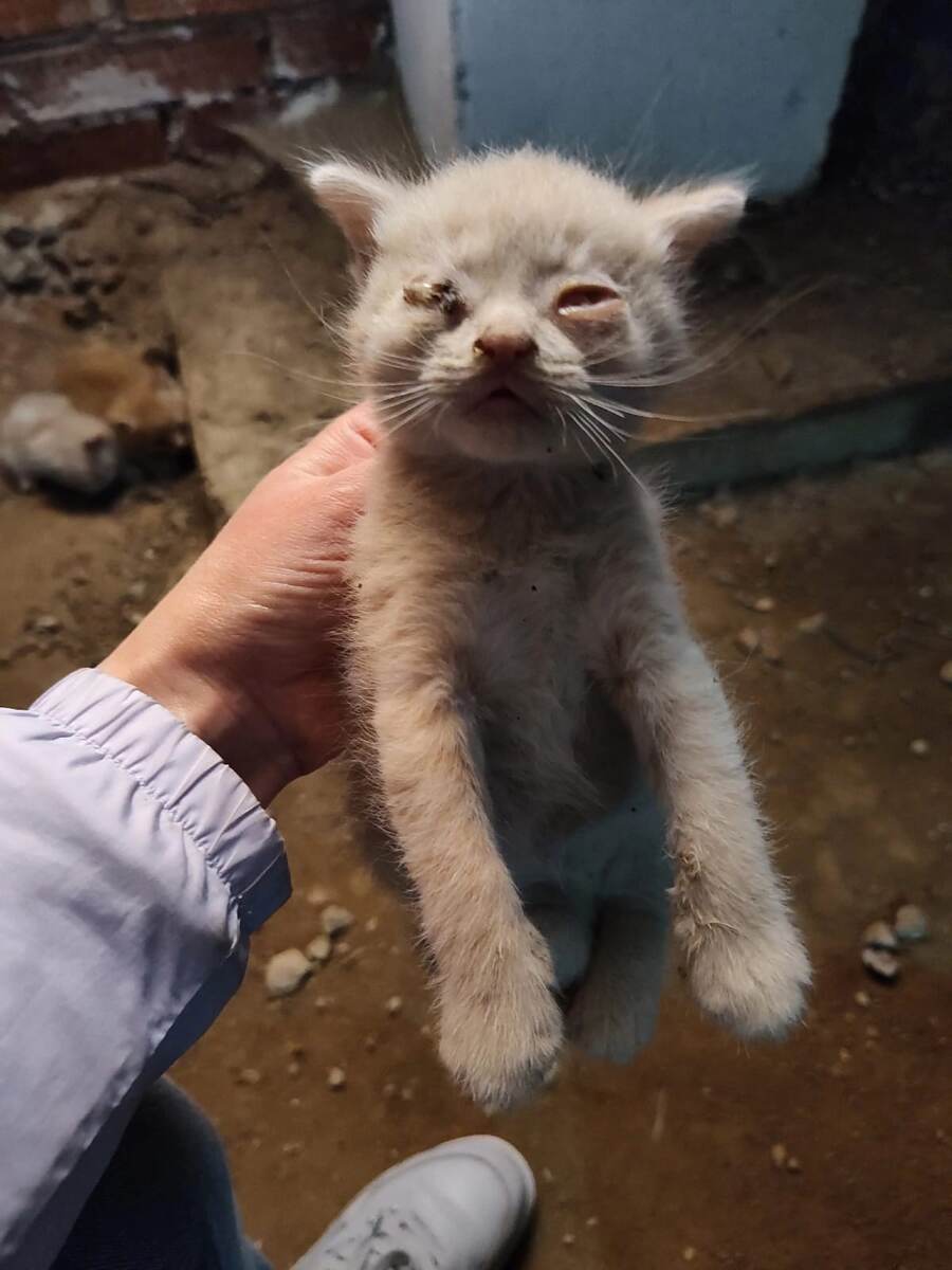 Такое сообщение пришло в чат приюта от одного из слесарей по работе спустившегося в подвал. Он застал жуткую картину: кошка-мама отбивала от новорождённых котят несколько крыс, размером с неё саму. Крысы нападали на крохотных детей. Им заживо отгрызали лапки… Котята были в критическом состоянии, совсем-совсем крошечные, родившиеся не более двух недель назад. Мужчина разогнал крыс и разослал всем своим знакомым информацию о них, умоляя хоть кого-то помочь. К себе забрать у него не было возможности. В приют таких крошек тоже не взять. Просто нет сотрудника для круглосуточного выхаживания. Да и клиники уклончиво отвечали про «маленькие шансы». Тогда и маму, и детей забрала к себе домой наша волонтёр, у которой своих-то животных уже целых десять. Кошка в стрессе котят выкармливать отказалась, совсем перестала подходить к ним. И нашему волонтёру пришлось заменить им мать во всех смыслах. Протирать и лечить глазки (от антисанитарии в подвале загноились), обрабатывать культи лап, кормить из