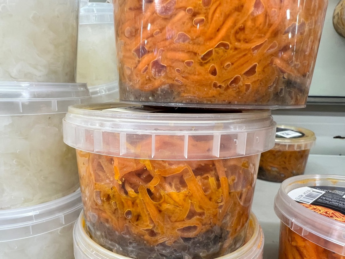 #ОтЧитателей ❄ «Арктического Обозревателя» Походу, в Мурманске беда не только с дорожными перекрестками, но и с магазиной сетью. Захотели по-быстрому перекусить, и обратили внимание на странный салат морковки по-корейски: он какой-то чёрный, а сами банки – вздутые. Подумали, что там что-то добавлено, но нет – это гниль. А срок годности – конец июля.