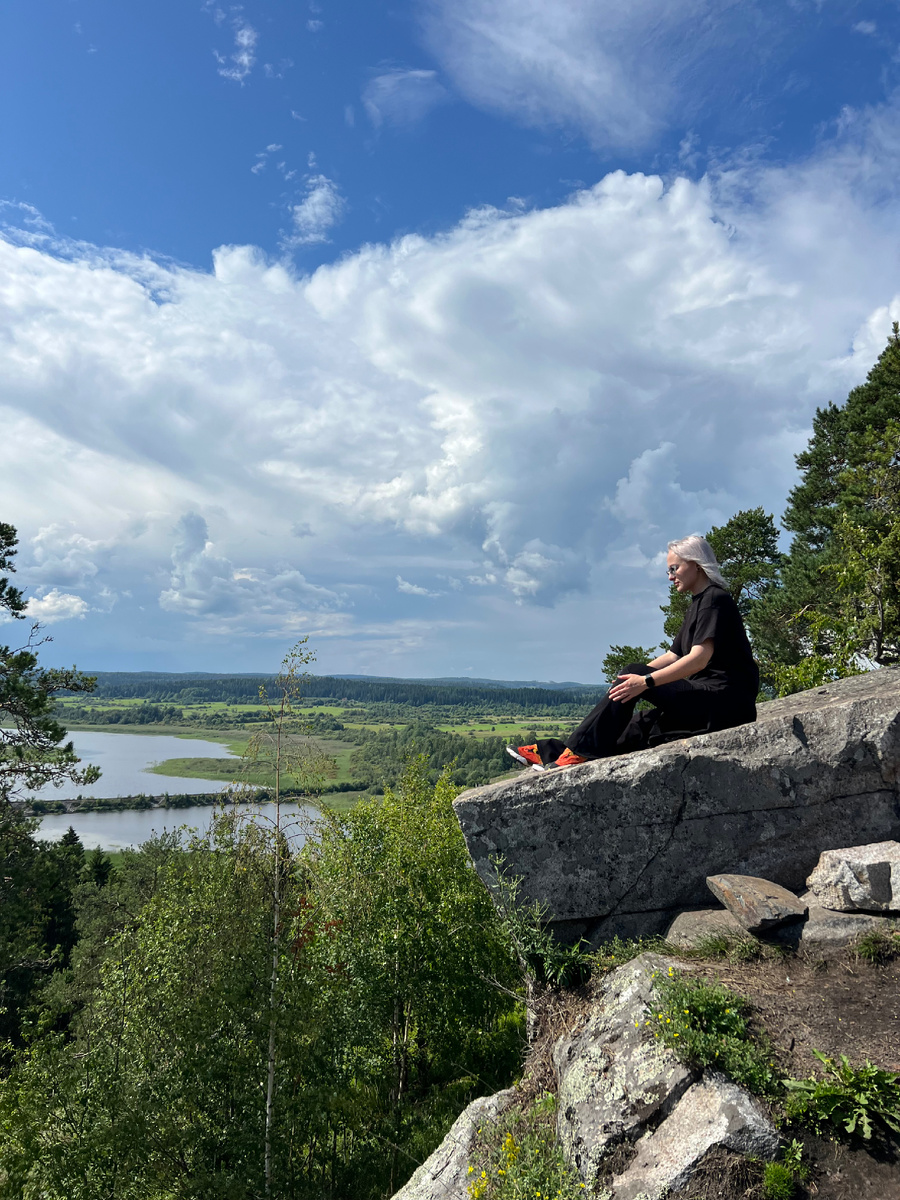 Дорога к вершине оборудована деревянными лестницами и тропами. На каждом пролете есть лавочки, чтобы передохнуть. По пути встречаются огромные валуны, поросшие мхом, местами даже похожие на руины древней крепости. Всё усыпано черникой, папоротником и невероятным лесным запахом.