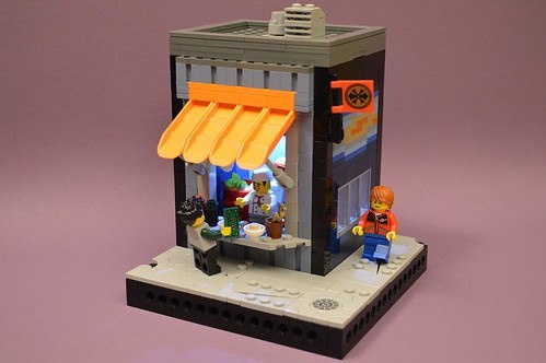 Мини-кафе из LEGО с разделителем кирпичей! Участник erined5 построил эту крошечную, но детализированную сценку для челленджа локального LUG. Основной элемент — разделитель кирпичей, превращённый в стильный оранжевый навес! Внутри кипит жизнь: бариста готовит напитки, гости наслаждаются атмосферой, а снаружи минифигурка дополняет уютную картину. Такой уровень детализации — просто восторг! 🧡 #LEGO #AFOL Источник: Flickr Lego group