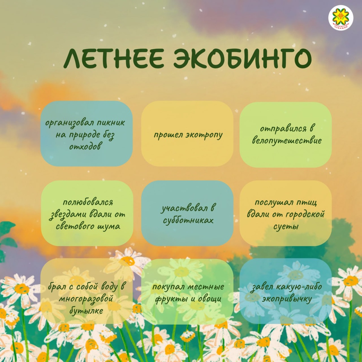 ☀️Вот и прошла первая половина лета, впереди – не менее яркая его часть, в которую вам необходимо успеть осуществить все задуманное! А пока – отмечайте в нашем бинго свои экодостижения👍 #МинприродыЧувашии