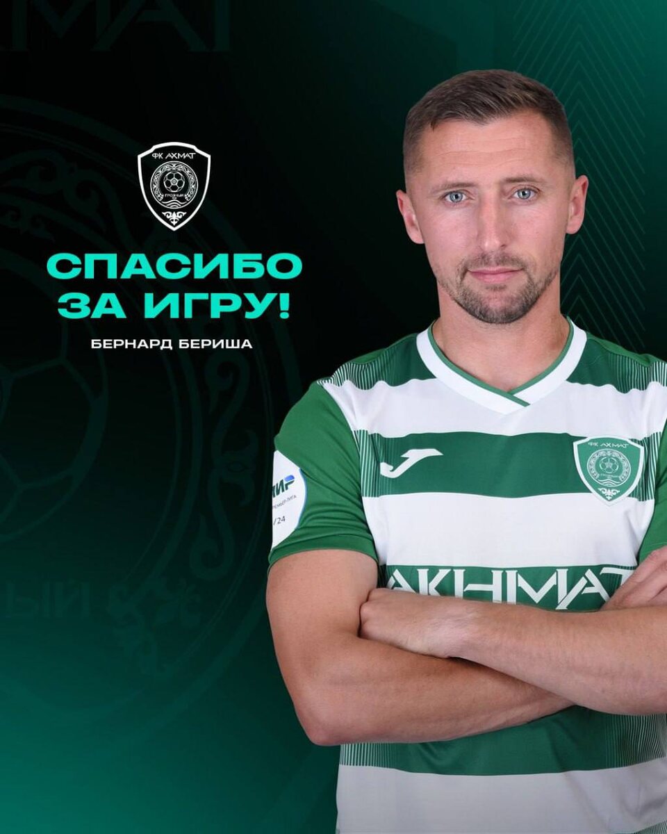 ❌ Футбольный клуб «Ахмат» объявил об уходе вингера Бернарда Бериши, который выступал за клуб с 2017 года