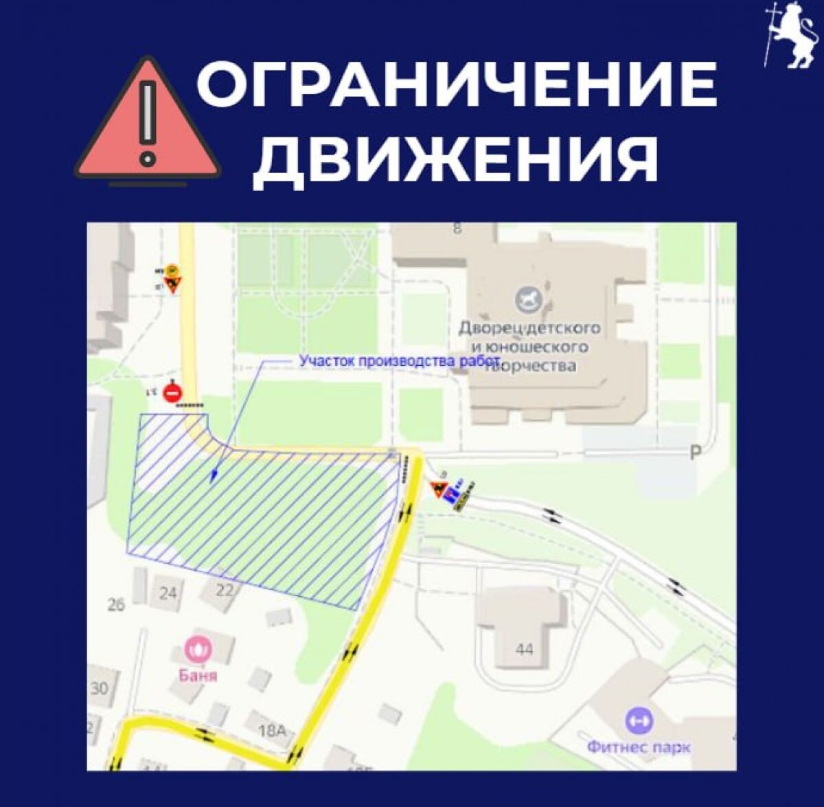 Дорога у парка ДТЮ во Владимире останется перекрытой еще на месяц