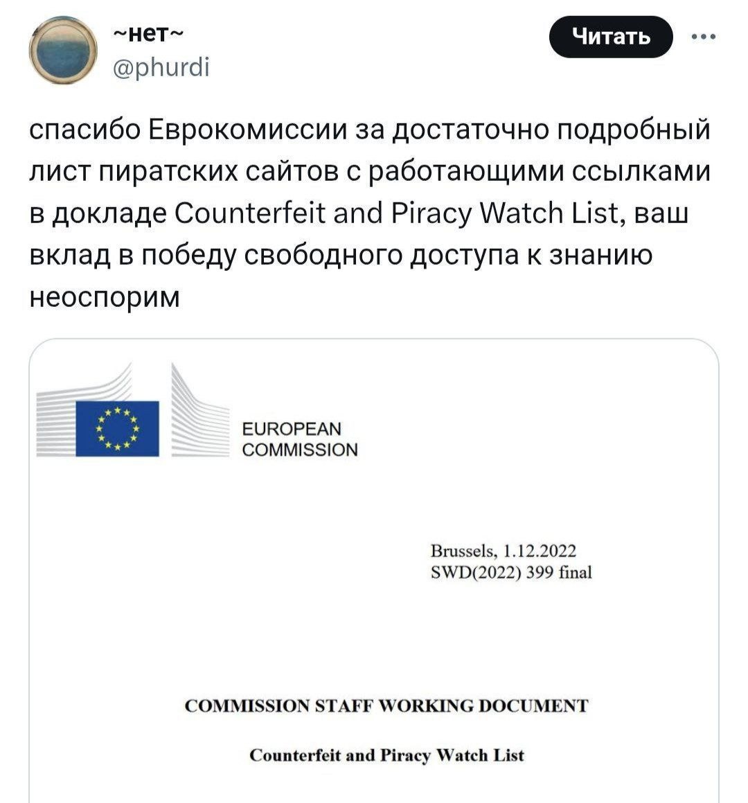 Топ всех ПИРАТСКИХ сайтов опубликовала Еврокомиссия — ни в коем случае на них не заходите 😏 Среди них есть буквально всё — сервисы для скачивания софтов, контента, игр и т. д. 1. Обменники с пиратским контентом • Mega.nz — музыка, AI-модели голосов • Rapidgator.net — музыка, фильмы, сериалы • Doodstream.com — видеохостинг, платит за пиратский контент 2. Для скачивания музыки/видео с YouTube и откуда угодно: • Ytmp3.cc, Ytmp3.nu • Y2mate.com, YT1s.com 3. Прочий пиратский контент: • Fmovies.to — фильмы и сериалы • Seasonvar.ru — сериалы на русском • Hianime.to / Aniwatch.to / zoro.to — аниме • fitgirl-repacks.site — репаки пиратских PC-игр • Hianime.to / Aniwatch.to / zoro.to — аниме Полный список можно найти тут. Сохраняем и отправляем друзьям, чтобы они тоже туда не заходили. Бесплатный GPT-bot ⚡️НейроМастер⚡️