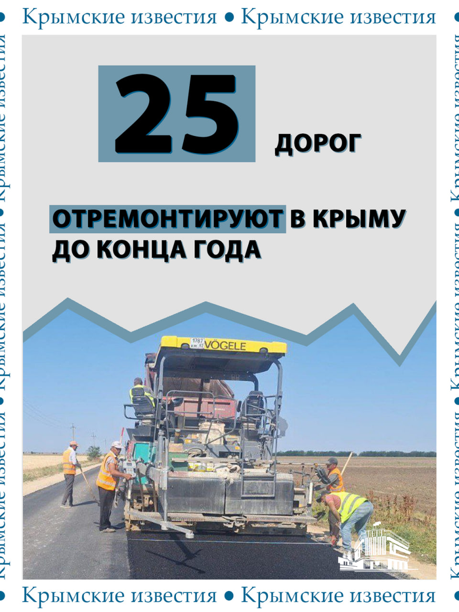 🛣 25 дорог отремонтируют в Крыму до конца года. Их протяжённость – почти 184 километра. Также восстановят 3 моста. При этом, сегодня в нормативном состоянии находятся около 85% дорог в городах республики, передаёт пресс-служба крымского Госсовета. Какие ещё работы планируются ⬇️ ▪️ Дорогу с полосой для велосипедистов для мегакурорта под Евпаторией построят в рамках федеральной программы развития Крыма ▪️ По той же программе предусмотрены строительство дороги Судак – Новый свет и ремонт дорожной сети в Евпатории и Коктебеле ▪️ Автобусы вместимостью до 100 пассажиров вскоре выйдут на маршруты в Симферополе Крымские известия. Больше новостей