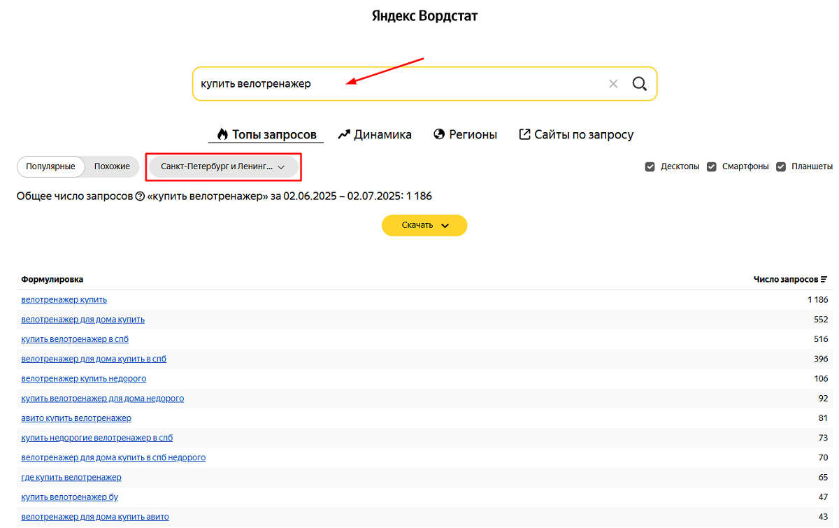 Подбор запросов с помощью Яндекс Вордстата