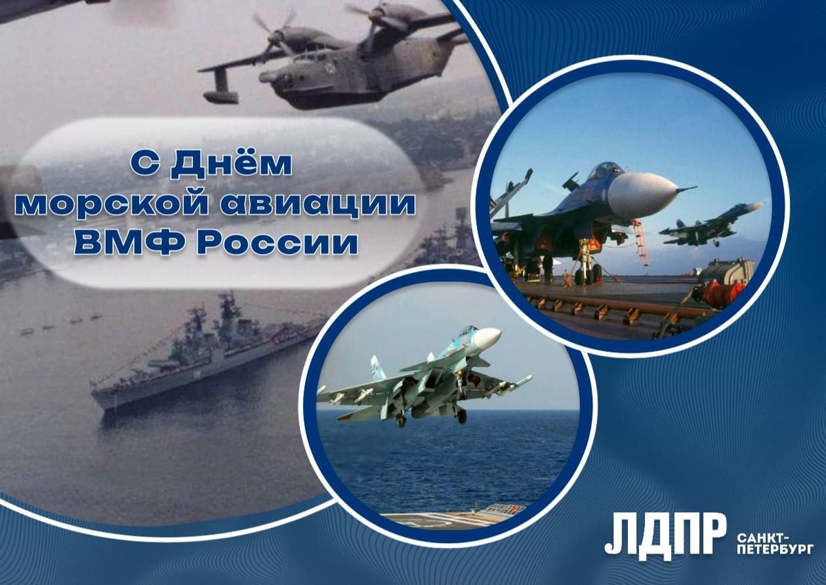 С Днём основания морской авиации ВМФ России! Этот день символизирует начало славных традиций отважных лётчиков, которые за годы службы создавали непобедимую воздушную мощь нашего флота. Морская авиация — это важнейший элемент морской обороны страны. Ветераны, своим опытом, терпением и стойкостью, создали прочный фундамент, который сегодня поддерживают настоящие герои — те, кто на боевом дежурстве и в учениях ежедневно доказывает своё мастерство и преданность Родине. ℹ️ ЛДПР чтит и уважает всех, кто в разные времена стоял на страже морских границ нашей Родины. Мы гордимся вашей преданностью и мужеством. Пусть над нашей страной всегда царит мирное небо, а ваши самолёты остаются надёжной защитой и настоящей гордостью России! 🔗 Мы ВКонтакте 🖥 Сайт ЛДПР | Санкт-Петербург