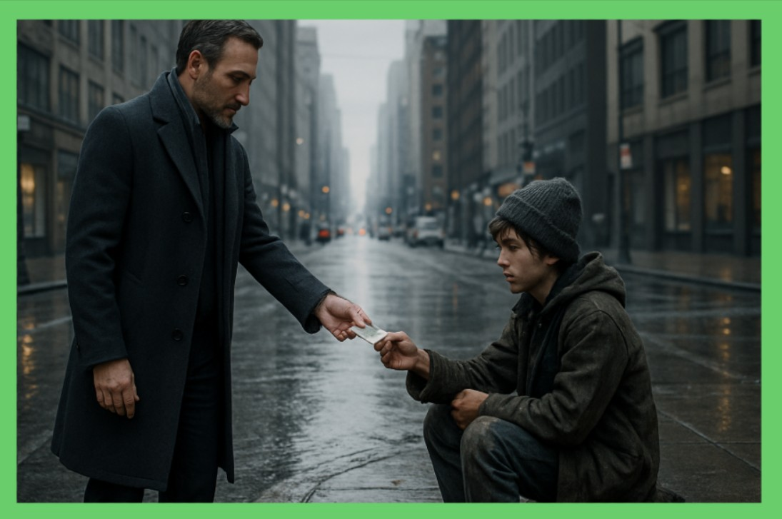 Полгода назад такой момент случился. Тогда его избили подростки постарше, отобрав мелочь, собранную за день. Он сидел на бордюре, вытирая кровь с разбитой губы, когда рядом остановилась дорогая машина. Из неё вышел солидный мужчина и, ничего не спрашивая, протянул ему крупную купюру.