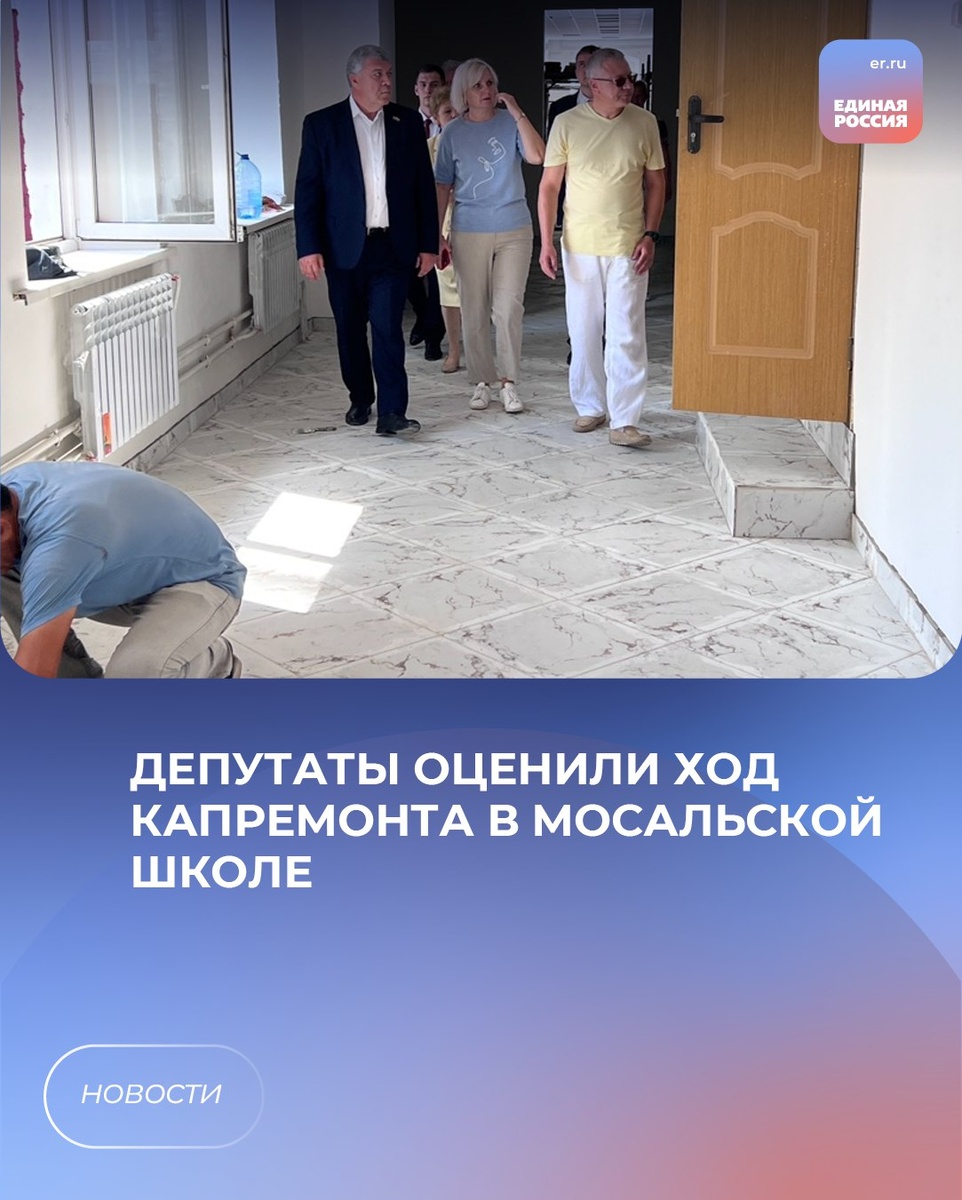🏫Депутаты Законодательного Собрания области Алексей Слабов и Виталий Ковалев провели партийный десант в школе №2 города Мосальска Результатами хода выполнения ремонтных работ народные избранники остались удовлетворены. Капитальный ремонт реализуется в рамках Народной программы партии «Единая Россия», национального проекта «Молодежь и дети» проекта «Модернизация школьных систем образования» госпрограммы «Развитие образования». В рамках капитального ремонта будут отремонтированы спортивный зал, его кровля, коридоры первого и второго этажей школы, фасад. На эти цели выделено более 9,8 млн рублей. #ЕР40 #ЕдинаяРоссия