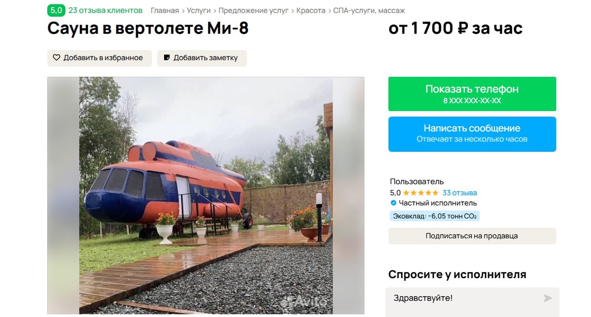 😳 Сауна из вертолета Ми-8 в ХМАО Югорчанин приглашает гостей посетить свою сауну из фюзеляжа вертолета Ми-8 за 1700 рублей в час. Известно, что вертолет ему достался в наследство от экс-владельцев участка, которые около 40 лет назад увезли Ми-8 на санях и тракторе на дачу. Хозяин также сообщает, что вертолет Ми-8 в 1991 году заметил Борис Ельцин, когда прилетал в столицу ХМАО. Кто был там? Делитесь впечатлениями⬇️ 📸: Авито Подписаться | Прислать новость | Дать «буст»