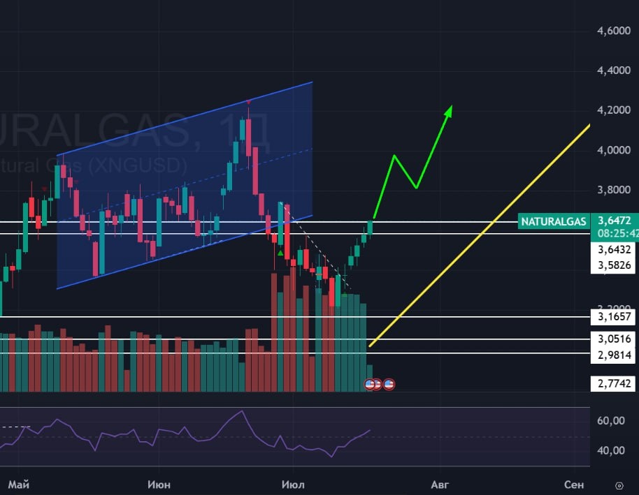 🚗 Продолжаю ждать газ среднесрочно вверх. Если пробьем сегодня сопротивление, то цели на 4,200 снова открыты!