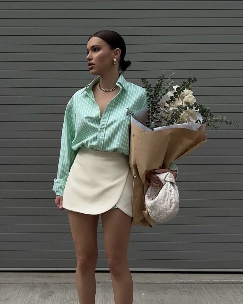 Этот образ – идеальный выбор для тех, кто ценит стиль и комфорт, отправляясь на прогулку по городу, встречу с подругами или шопинг. Элегантная юбка-шорты в сочетании с легкой рубашкой или топом создает утонченный, но непринужденный вид.