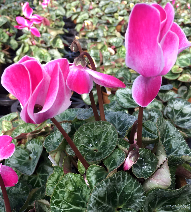 Цветение: Цикламен цветет в холодное время года, обычно с осени до весны, что делает его популярным украшением в зимние месяцы.