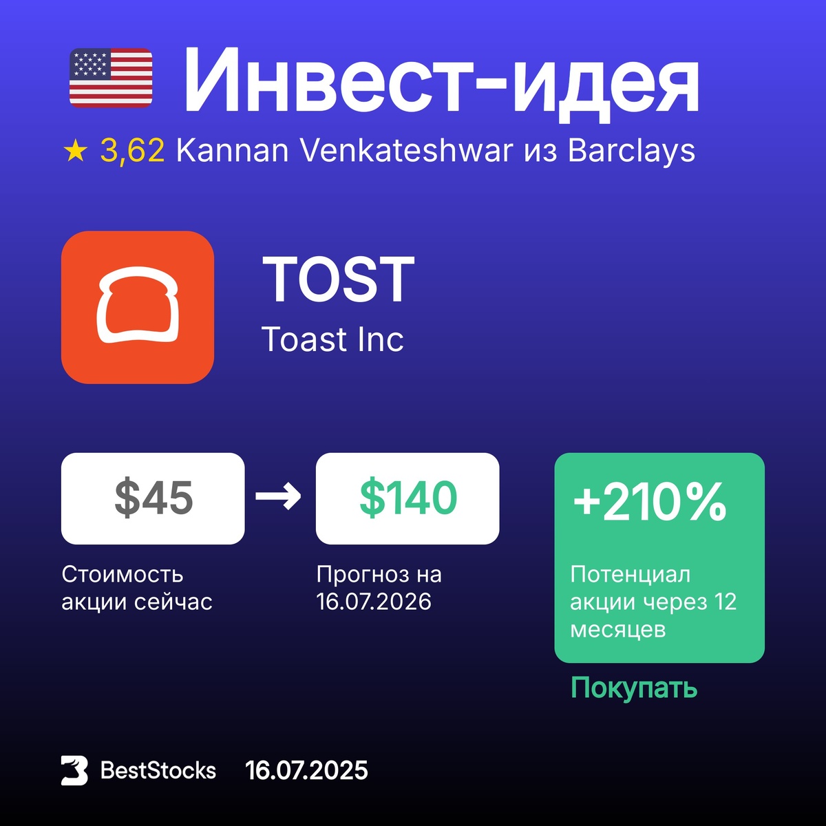 πΊπΈ ΠΠ½Π²Π΅ΡΡ-ΠΈΠ΄Π΅Ρ ΠΏΠΎ Π°ΠΊΡΠΈΠΈ Toast Inc Π’ΠΈΠΊΠ΅Ρ: TOST ΠΡΠΎΠ³Π½ΠΎΠ·Π½Π°Ρ ΡΠ΅Π½Π°: $140 (+210%) Π Π΅ΠΊΠΎΠΌΠ΅Π½Π΄Π°ΡΠΈΡ: ΠΠΎΠΊΡΠΏΠ°ΡΡ InvestRank Π°ΠΊΡΠΈΠΈ: 5 ΠΈΠ· 10 ΠΡΠΎΠ³Π½ΠΎΠ· ΡΠ΄Π΅Π»Π°Π½: 16.07.2025 ΠΡΠΎΠ³Π½ΠΎΠ· Π΄ΠΎ: 16.07.2026 ΠΠ½Π²Π΅ΡΡ-ΠΊΠΎΠΌΠΏΠ°Π½ΠΈΡ: Barclays ΠΠ½Π°Π»ΠΈΡΠΈΠΊ: Kannan Venkateshwar ΠΡΡ ΡΠ΅ΠΊΠΎΠΌΠ΅Π½Π΄Π°ΡΠΈΠΈ Π½Π° ΡΠ΅Π³ΠΎΠ΄Π½Ρ β β’β’β’β’β’ π₯ ΠΠΎΠ»ΡΡΠ°ΠΉΡΠ΅ Π±ΠΎΠ»Π΅Π΅ 400 ΡΠ²Π΅ΠΆΠΈΡ