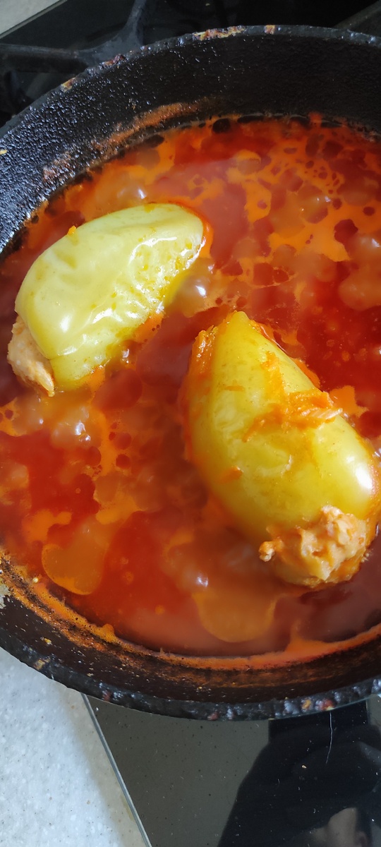 Решила я сегодня по-быстрому приготовить ужин🍲. Самый простой. Гречка с фаршированным перцем🫑. А чтобы было ещё быстрее, перцы у меня готовые. Обычно раньше я готовила отдельно гречку и в подливке перцы. Ну, поскольку сегодня я хотела максимально быстро, я сделала всё в одной сковороде! И знаете, это очень вкусно😋 и быстро. Можно иногда так готовить. Гречка Морковь Лук Томатная паста Соль и специи по вкусу Фаршированные перцы Количество ингредиентов я добавляю на глаз. Хочу сегодня больше моркови добавляю, а хочу меньше. Иногда вообще без лука. Морковь с луком слегка обжариваем. Добавляем томатную пасту. На этом этапе немного солю и добавляю специи. У меня копченая паприка и чеснок сушеный. Немного добавляю воды. Около минуты потушить. Добавляю перцы. Заливаю водой. И тушим до полуготовности перцев. Да их всего два, так как больше ни кто не захотел. Добавляем промытую гречку. Солим ещё, если необходимо. Добавляем воды. Я добавляю на глаз. Примерно на сантиметр выше гречки. Гот