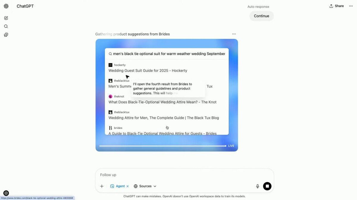 ⚡️ ChatGPT Agent ЗАПУЩЕН! OpenAI объединили сразу 3️⃣ свои нейросети в ЕДИНУЮ систему — ChatGPT, Deep Research и Operator. Agent способен управлять компьютером и решать ЛЮБЫЕ задачи: 🔅 Задаете цель — создать презентацию, приобрести билеты или обработать электронную почту. 🔅 ChatGPT Agent разделяет её на подзадачи и активирует виртуальную рабочую среду. 🔅 ИИ-помощник навигирует по веб-сайтам, выполняет клики, заполняет формы и структурирует данные в таблицах. 🔅 Перед критически важными операциями запрашивает разрешение — перед совершением платежей, публикацией контента или отправкой сообщений. 🔅 По завершении работы вы получаете готовый результат — аналитический отчёт, презентацию, бронирование и многое другое. ПРОРЫВ: ChatGPT Agent демонстрирует производительность в ДВА РАЗА выше, чем нейросеть o3. Ваш персональный J.A.R.V.I.S — здесь. INCUBE.AI | ПОДПИСАТЬСЯ