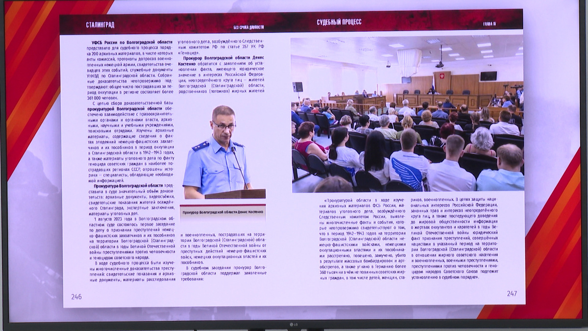 Участниками брифинга стали эксперты, которые работали над созданием книги, представители науки и ветеранского сообщества. В уникальном издании собраны редчайшие архивные документы, фотографии, воспоминания участников событий, жителей осажденного города, а также материалы судебного процесса о геноциде советского народа на территории Сталинградской области. Книга была подготовлена по инициативе ветеранских организаций.