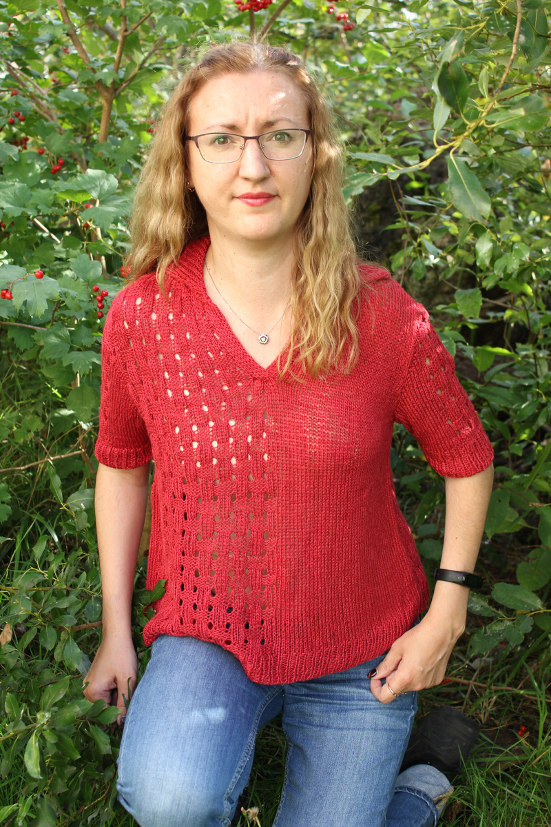 Для создания футболки я использовала спицы и свое воображение, чтобы оказаться в сказке про диких лебедей. Для создания эффектной текстуры я взяла красную пряжу и добавила яркости в свою работу.