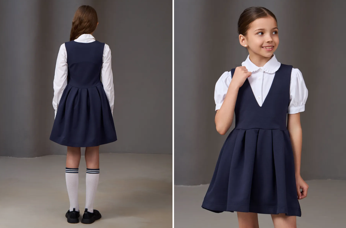 🔹 Цена: 1869 ₽ (вместо 4336 ₽) Ребёнок будет чувствовать себя комфортно весь день — ткань не сковывает движения и легко стирается. Отличный вариант и для торжественной линейки, и для обычного школьного дня. Сарафан школьный от AMATONI — удобно, практично, аккуратно Если вы ищете универсальный вариант на каждый школьный день — этот сарафан именно он. Простая прямая модель идеально сидит и не сковывает движений. Подходит и для первоклашек, и для девочек постарше. 🔹 Цвет: синий