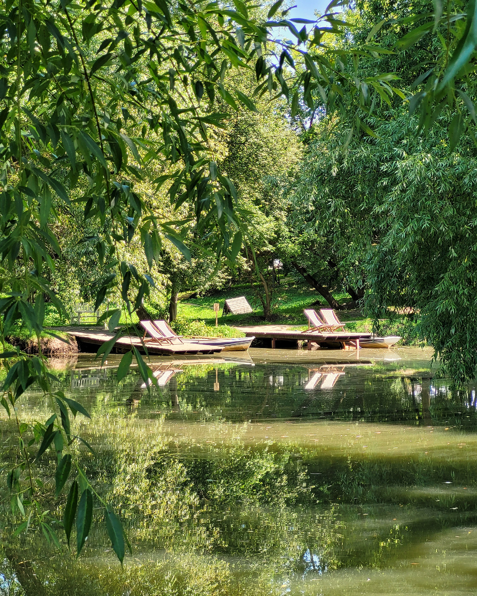 Да, усадьбе Скорняково-Архангельское в Липецкой области очень повезло. Историю её спасения рассказывала в предыдущей статье — вот ссылка. И всем нам тоже, потому что теперь можем и погрузиться в атмосферу того времени, и спрятаться хоть ненадолго от своих проблем. ...мой любимый формат проживания — вдали от городской суеты. Вокруг только бесконечные луга, старый сад и Дон — ах, какая ласковая в нём вода и какие роскошные закаты на берегу. С пляжа хоть не уходи. И он хорош — с чистым песочком и матрасиками на лежаках. ...кресла — так и манят упасть с книжкой. Потом с ней же — на веранду ресторана, где стоят в вазах полевые цветы и звучит ностальгическая музыка. Угощения же из местных продуктов. Мне разбили сердце донские щучьи котлетки, свойский томатный сок и клубничный апероль. ...в здании бывшей ткацкой фабрики. Тут вообще всё, что удалось восстановить, используют. Чтобы как раз был тот самый эффект полного погружения в усадебную атмосферу XIX века. Интерьеры, мебель, всякие мелочи в