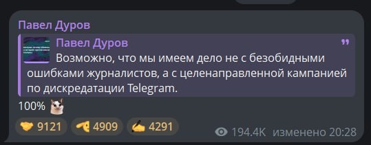 π£ ΠΡ 100% ΠΈΠΌΠ΅Π΅ΠΌ Π΄Π΅Π»ΠΎ Π½Π΅ Ρ Π±Π΅Π·ΠΎΠ±ΠΈΠ΄Π½ΡΠΌΠΈ ΠΎΡΠΈΠ±ΠΊΠ°ΠΌΠΈ ΠΆΡΡΠ½Π°Π»ΠΈΡΡΠΎΠ², Π° Ρ ΡΠ΅Π»Π΅Π½Π°ΠΏΡΠ°Π²Π»Π΅Π½Π½ΠΎΠΉ ΠΊΠ°ΠΌΠΏΠ°Π½ΠΈΠ΅ΠΉ ΠΏΠΎ Π΄ΠΈΡΠΊΡΠ΅Π΄Π°ΡΠ°ΡΠΈΠΈ Telegram, β ΠΡΡΠΎΠ²