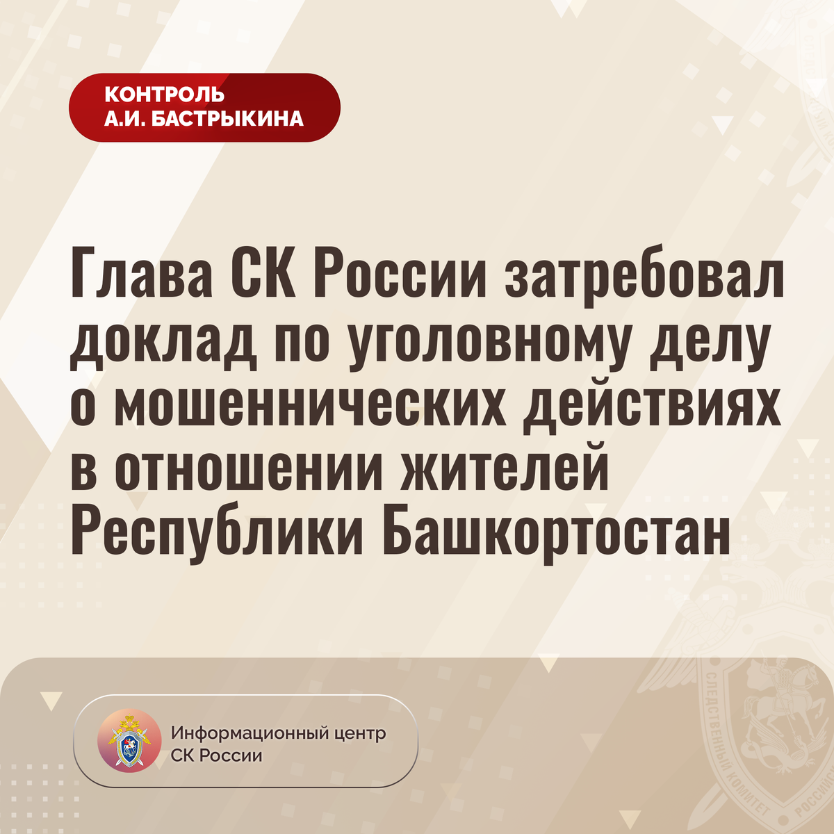 Глава СК России затребовал доклад по уголовному делу о мошеннических действиях в отношении жителей Республики Башкортостан