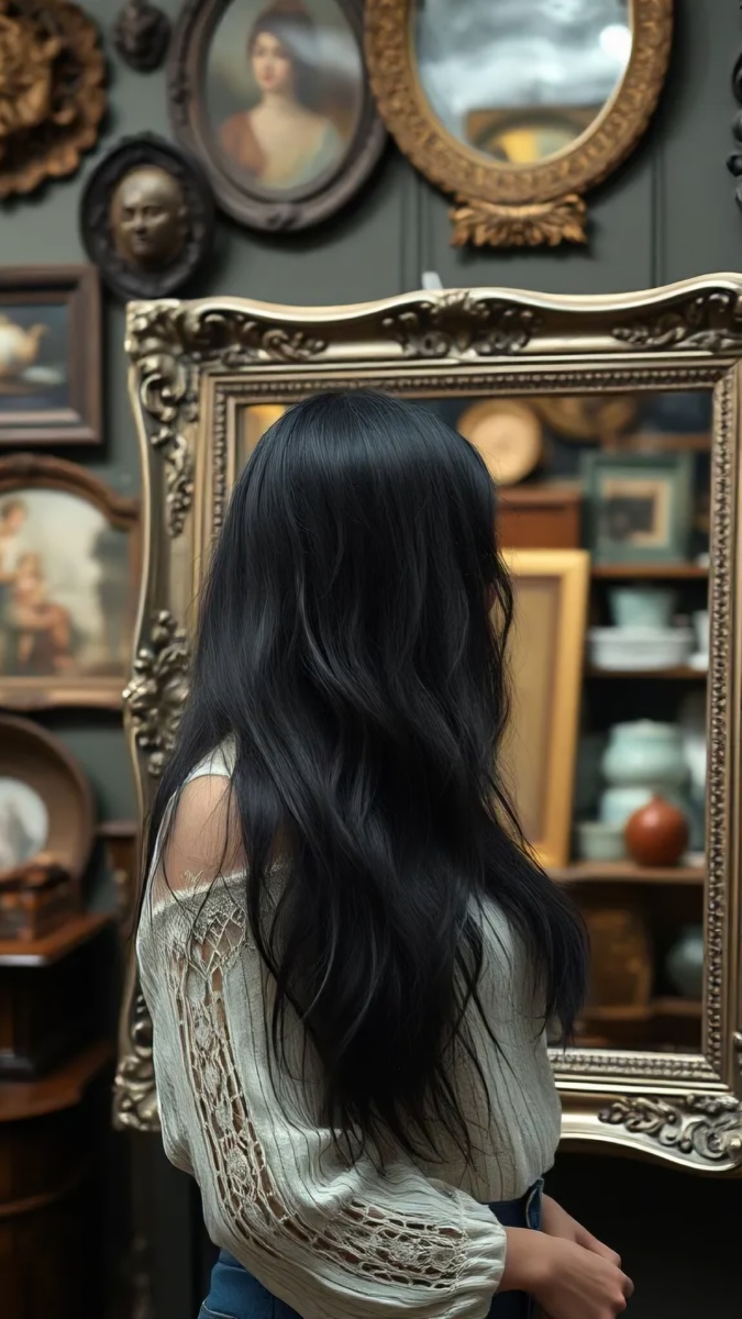 Дождь барабанил по крыше маленькой антикварной лавки «Забытые Шепоты». Элис, привыкшая сливаться с тенями книжных полок библиотеки, где работала, зашла сюда случайно, спасаясь от ливня. Пыль висела в воздухе густым покрывалом, а запах старой бумаги и воска смешивался с сыростью. Ее взгляд скользнул по стеллажам с потускневшим серебром и треснутым фарфором, пока не наткнулся на него. Зеркало. Небольшое, в тяжелой раме из черненого дерева, инкрустированной перламутром, мерцавшим даже в полумраке. Оно не висело на стене, а стояло на отдельном пюпитре, словно ждало. Элис подошла ближе. В его глубине отразилась она сама: мокрые, темные волосы, лицо без макияжа, кажущееся ей слишком широким, глаза – обычные, серые, без блеска. Одежда – мешковатый свитер, как доспехи, скрывающие формы, которые она считала неидеальными. Она вздохнула. Обычная. Невидимая. «Почему бы не взглянуть?» – прошелестел голосок в голове, звучавший подозрительно похоже на ее собственную, но давно забытую детскую интона