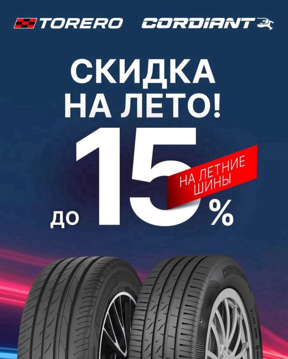Скидки на лето! -15% на шины TORERO и CORDIANT
