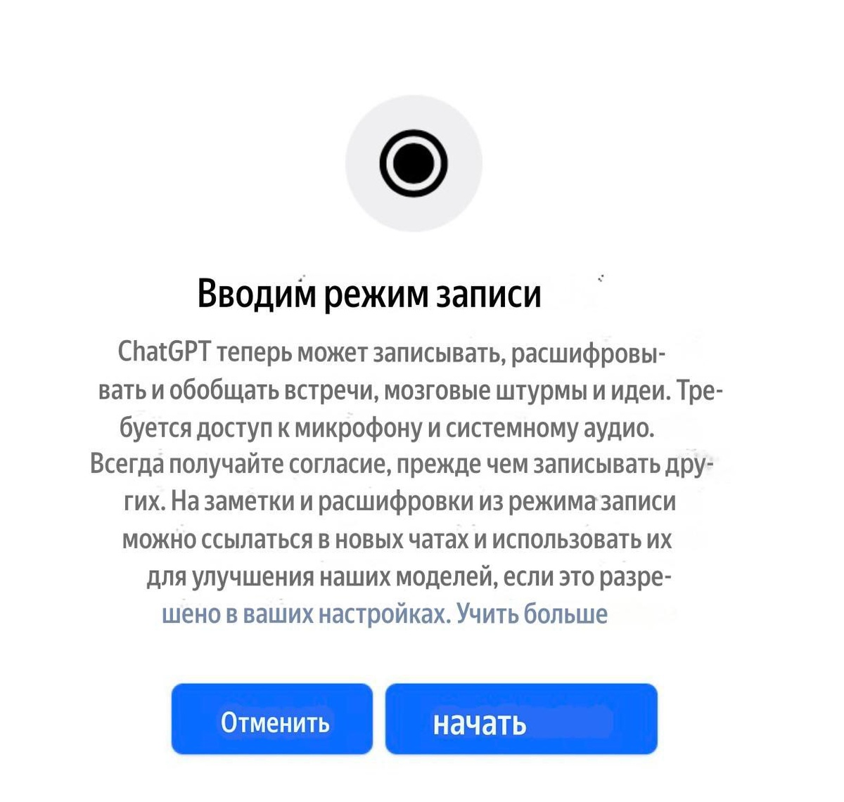 RIP 100500 стартапов Здесь подробности: https://help.openai.com/en/articles/11487532-chatgpt-record