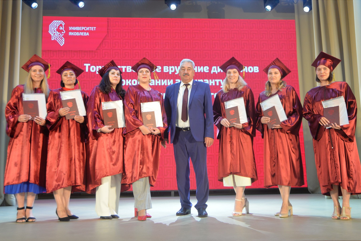Председатель Госсовета Чувашии Леонид Черкесов и ректор Чувашского государственного педагогического университета имени И.Я. Яковлева Игорь Кожанов вручили дипломы выпускникам-аспирантам. В этом году аспирантуру оканчивают 24 человека.