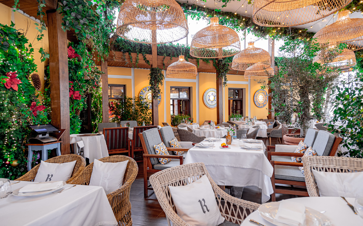 В этом ресторане гостей порадует сицилийская терраса: зелёная изгородь с ярко-жёлтыми лимонами, о аздвижная крыша для естественного света и защиты от дождя, и жалюзи в стиле римских штор для приватности.