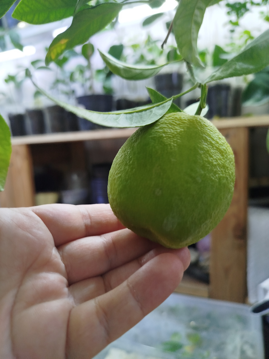 В третьем ряду лимоны и лиметты. Лиметта дольче романа подвержена жирным пятнам, поэтому поставила растение в первый ряд, чтобы "никакой грибок не пристал", но под ярким солнцем растение цвело и сбрасывало завязь. Только когда над лиметтой появилась тень от декапона, она завязала плодик. Лимон Борнео растит плодик в третьем ряду и радует изумрудной зеленью.