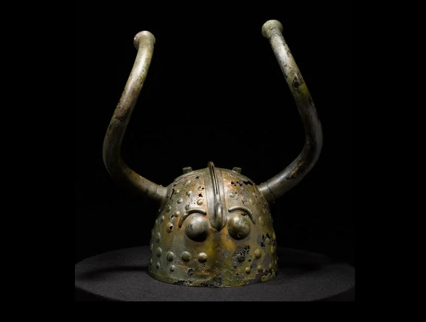 Археологи перекопали полмира, но рогатых шлемов эпохи викингов не нашли. Зато есть один интересный экземпляр из Дании — но он на полторы тысячи лет старше и явно церемониальный. Представьте жреца бронзового века в таком головном уборе — впечатляюще, но не для боя.