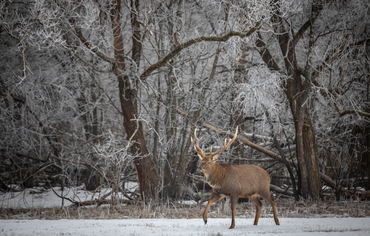 Январь подходил к концу, оставались считанные дни до долгих февральских ночей, отягощённых ожиданием первого весеннего месяца. Зимой это назвать было нельзя: череда оттепелей и заморозков полностью растопила снег. Все поля покрылись толстой коркой льда. В лесах снег остался только местами. Много раз протаявший и замёрзший, он больше походил на плотные куски раскрошенного льда. Это сильно помогало в определении передвижения зверей по лесу. Копытные издавали дикий хруст, их было слышно метров за сто. Лёд не давал возможности ускоряться, и зверю приходилось основательно раздумывать, прежде чем сделать очередной шаг. Как следствие, бегать никто и не пытался, во избежание падений и переломов при беге. Ещё одним огромным аргументом за проведение фотоохоты стала погода. Вдарили небольшие морозы, с очень странной влажностью, которая, вымораживаясь, оседала на деревья и кустарники, создавая причудливые узоры на ветках. Лес стал свинцовым, с яркими белыми штрихами замороженной влаги, и больше по