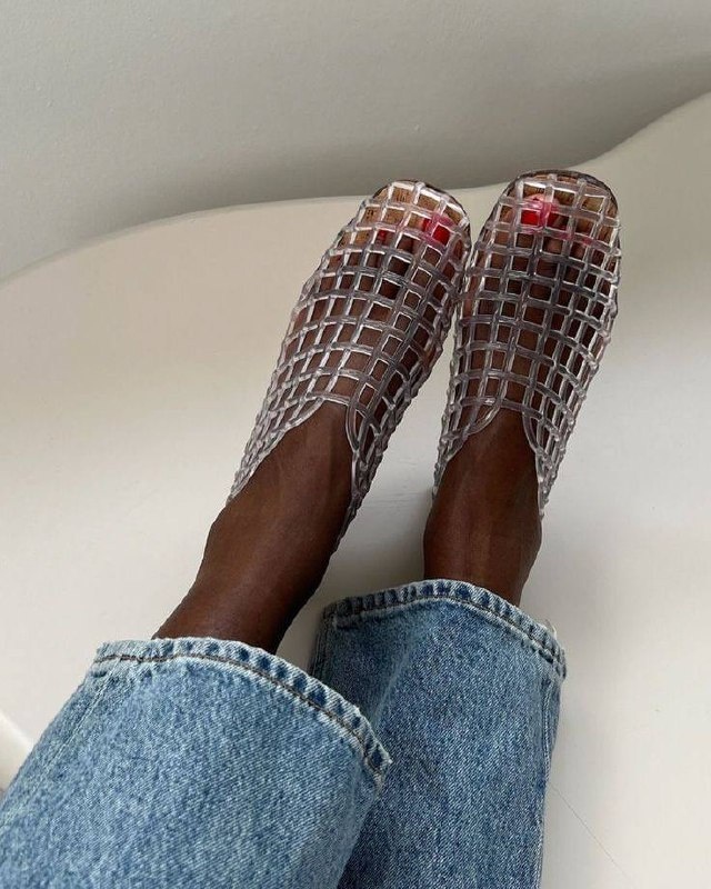 Jelly shoes🙌🏼 Тренд лета 2025❤️🤫 Их еще называют аквашузы/аквасоки - тапочки, которые, казалось бы, изначально не предназначены для повседневной жизни🫢 Но модницы нашли им применение и внедрили не только в пляжные и отпускные комплекты, но и в образы с джинсами, брюками и юбками!) Выглядит это необычно и интересно☺️ Как вам такой тренд❓ ❤️🔥Все посты по трендам вы найдете по тегу: #MLтренды