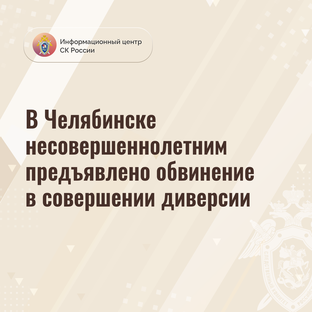 Следственными органами СК России по Челябинской области двоим молодым людям 2007 и 2009 годов рождения предъявлено обвинение в совершении преступления, предусмотренного п. «а» ч. 2 ст. 281 УК РФ (диверсия).