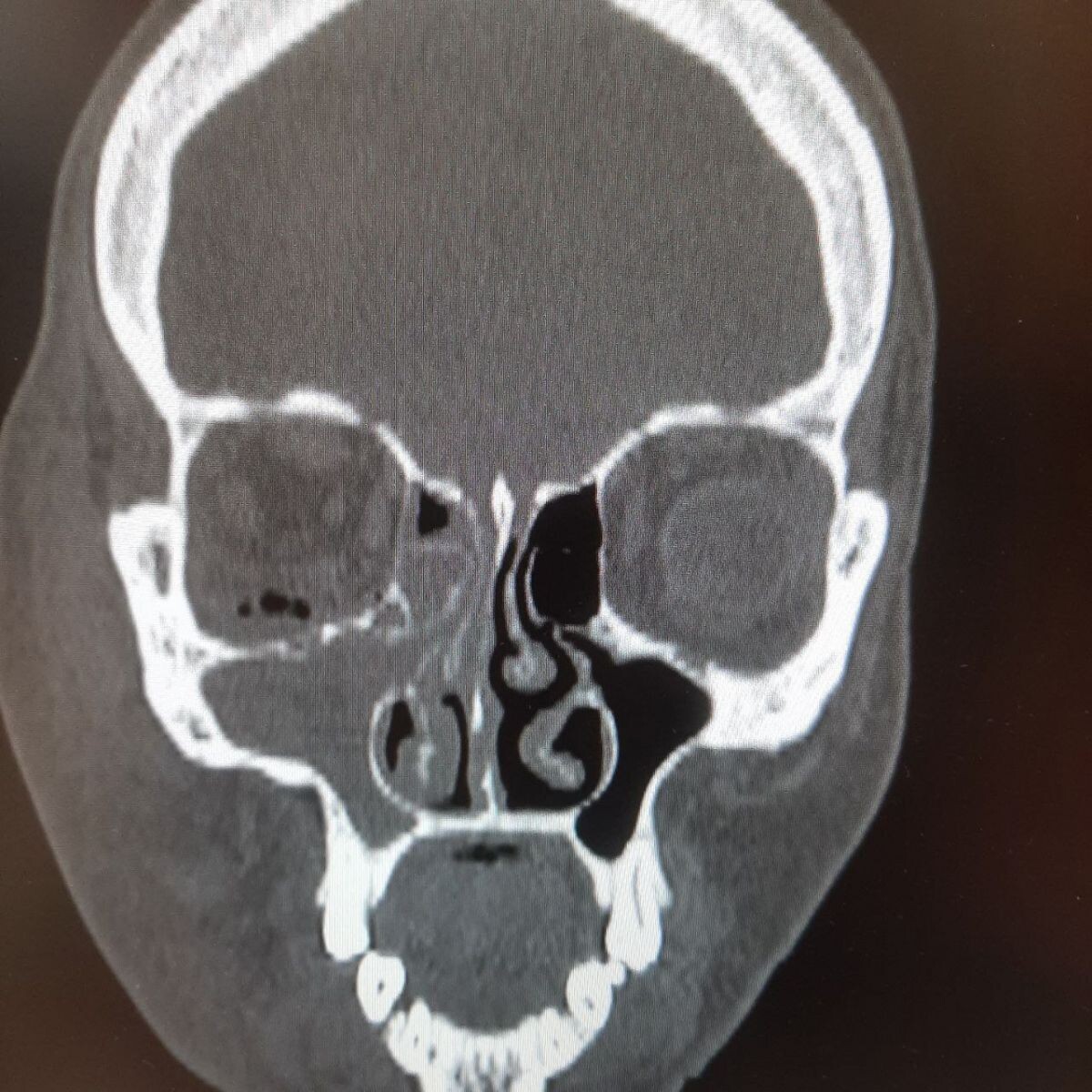 Врачам пришлось спасать пациентку с флегмоной. К моменту поступления в больницу в глазнице уже образовался газ. Также женщина уже страдала гнойным гайморитом.