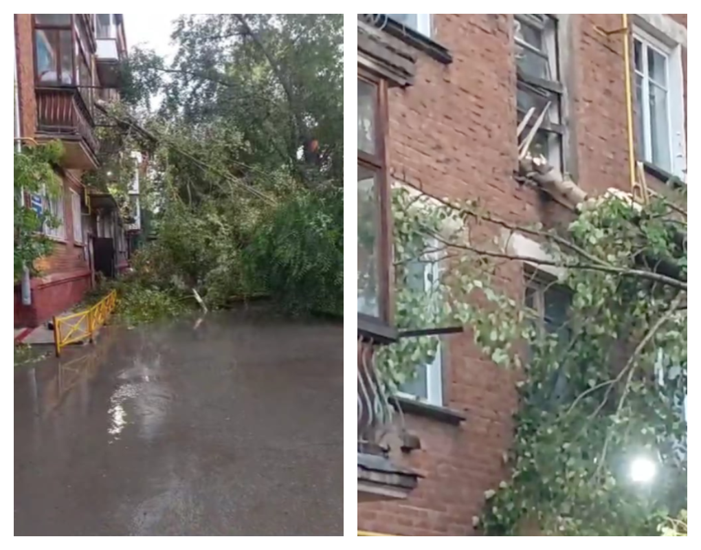 В Новосибирске рухнувшее во время урагана дерево разбило окна многоэтажки