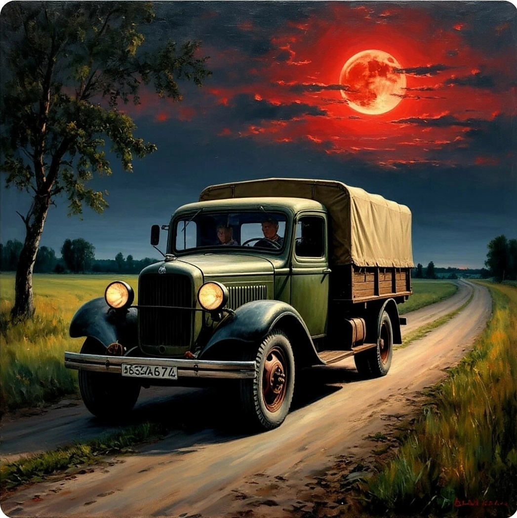 2–4 июля 1941 года До назначенной железнодорожной станции машины добирались больше суток. Вечером приближаясь к пункту назначения все увидели кружащие над станцией черные силуэты вражеских самолётов, столбы дыма и зарево пожара над станционными строениями. Остановились в отдалении и не рискнули тронуться в путь до захода солнца, когда небо уже темнело. Матвей послал вперёд машину Якова Павловича. Через полчаса завхоз вернулся, темный от переживаний. Догадавшемуся уже о плохих известиях учёному подтвердил ожидаемое – станция разбомблена, эшелоны горят. На окраине посёлка им встретились две машины семей командиров, третья сгорела со всеми людьми. Просят разрешения присоединиться к ним. От себя Яков Павлович добавил, что взяв их с собой будет больше шансов добиться погрузки на поезд. А сейчас пока темнота надо ехать до следующей станции. Благодаря высоко стоящей в небе на востоке растущей Луне водители хорошо различали дорогу и ехали всю ночь не опасаясь вражеских самолётов. На о