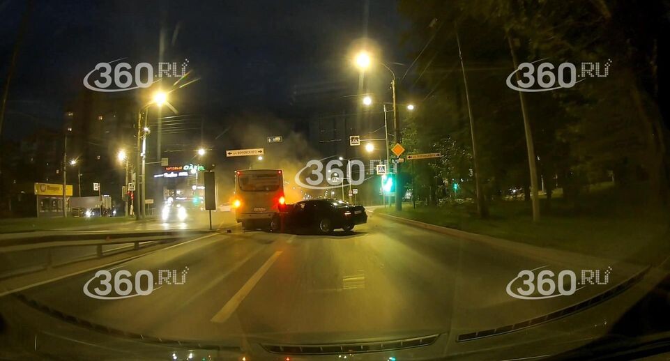 Сначала иномарка врезалась в маршрутный автобус, который ехал впереди, а тот по инерции задел еще две машины.