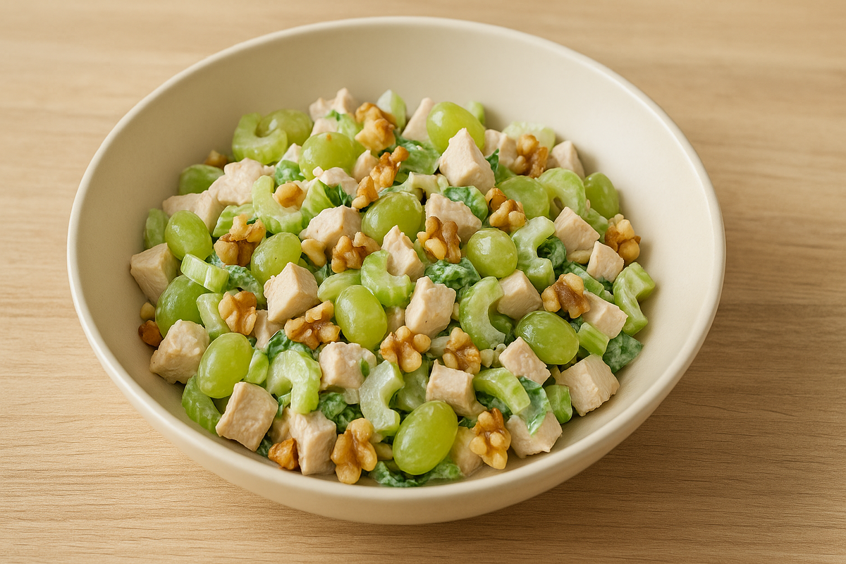 Этот салат не только легкий и полезный, но и насыщенный вкусом благодаря куриной грудке и орехам. Виноград и сельдерей придают блюду яркую текстуру и освежающий вкус, а курица делает его сытным и полноценным. Это отличный вариант как для обеда, так и для ужина, который подойдёт как для повседневных приемов пищи, так и для праздничного стола. Время приготовления: 25 минут
