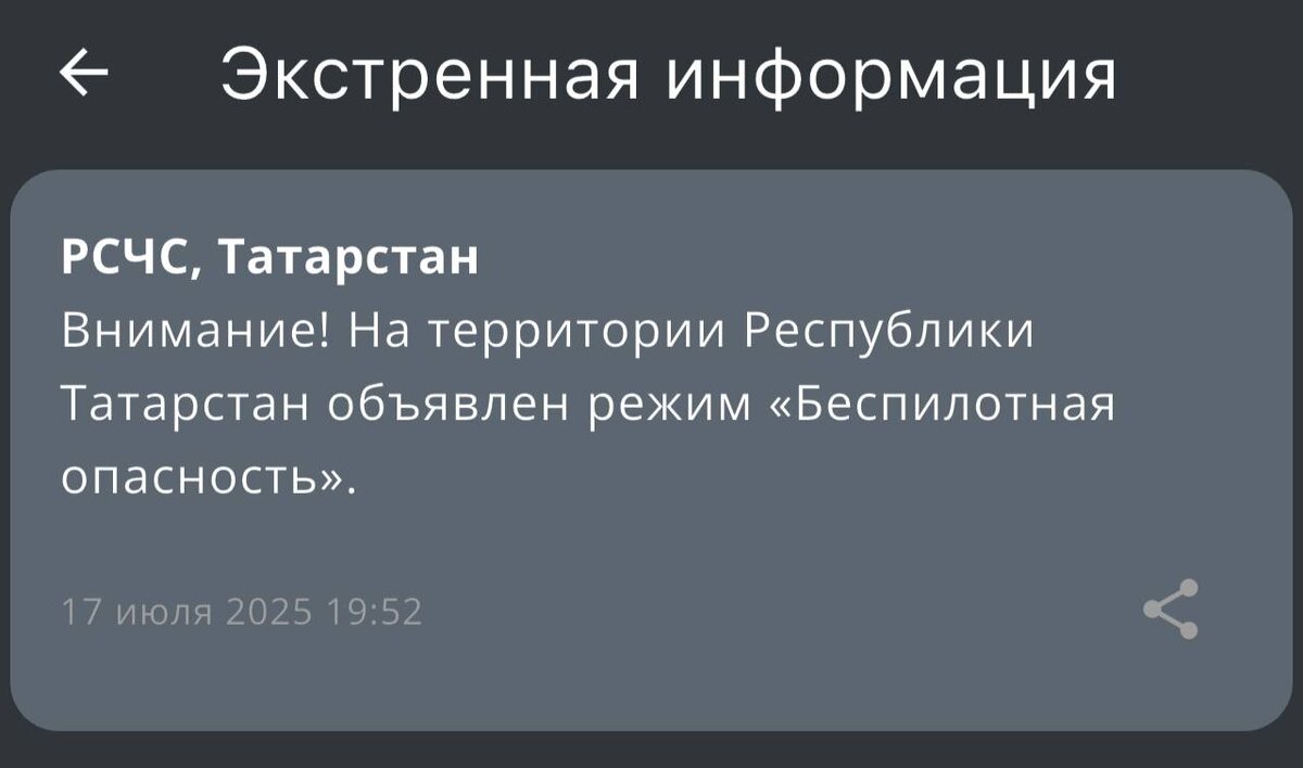 На территории Татарстана объявлен режим «Беспилотная опасность». 🌟 Tatarstan News